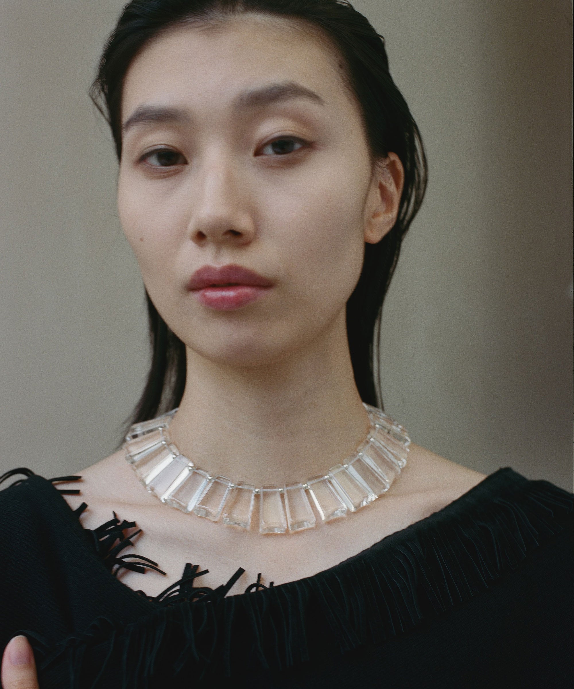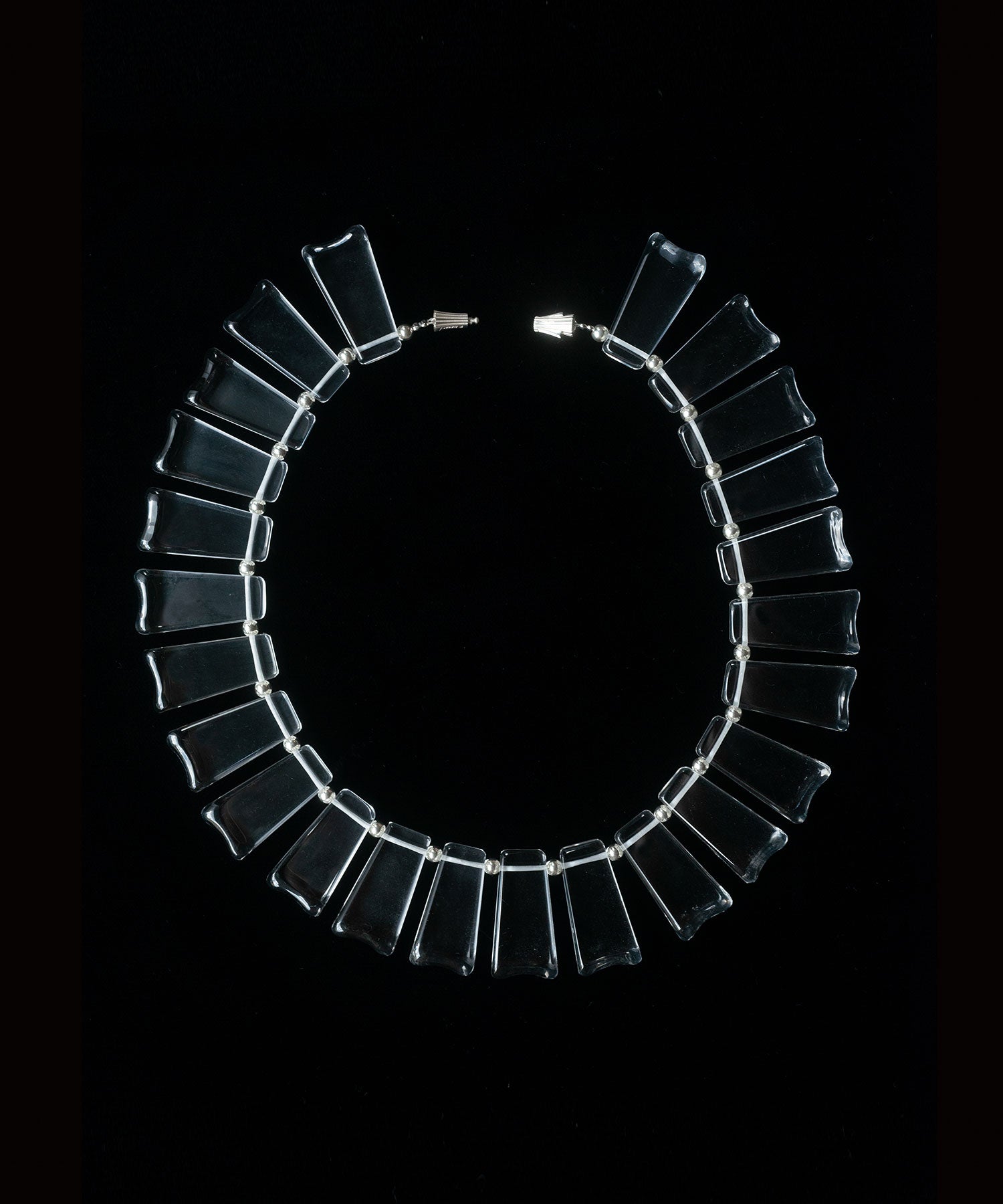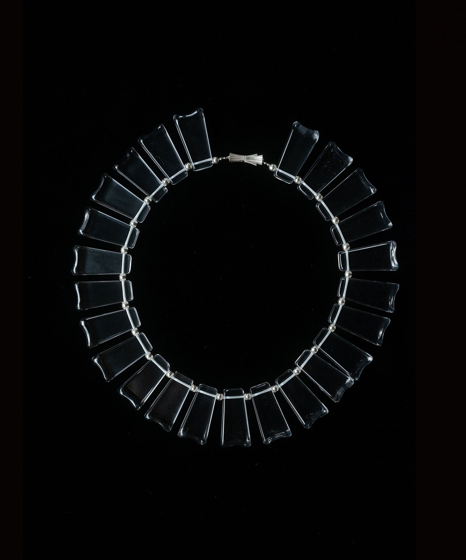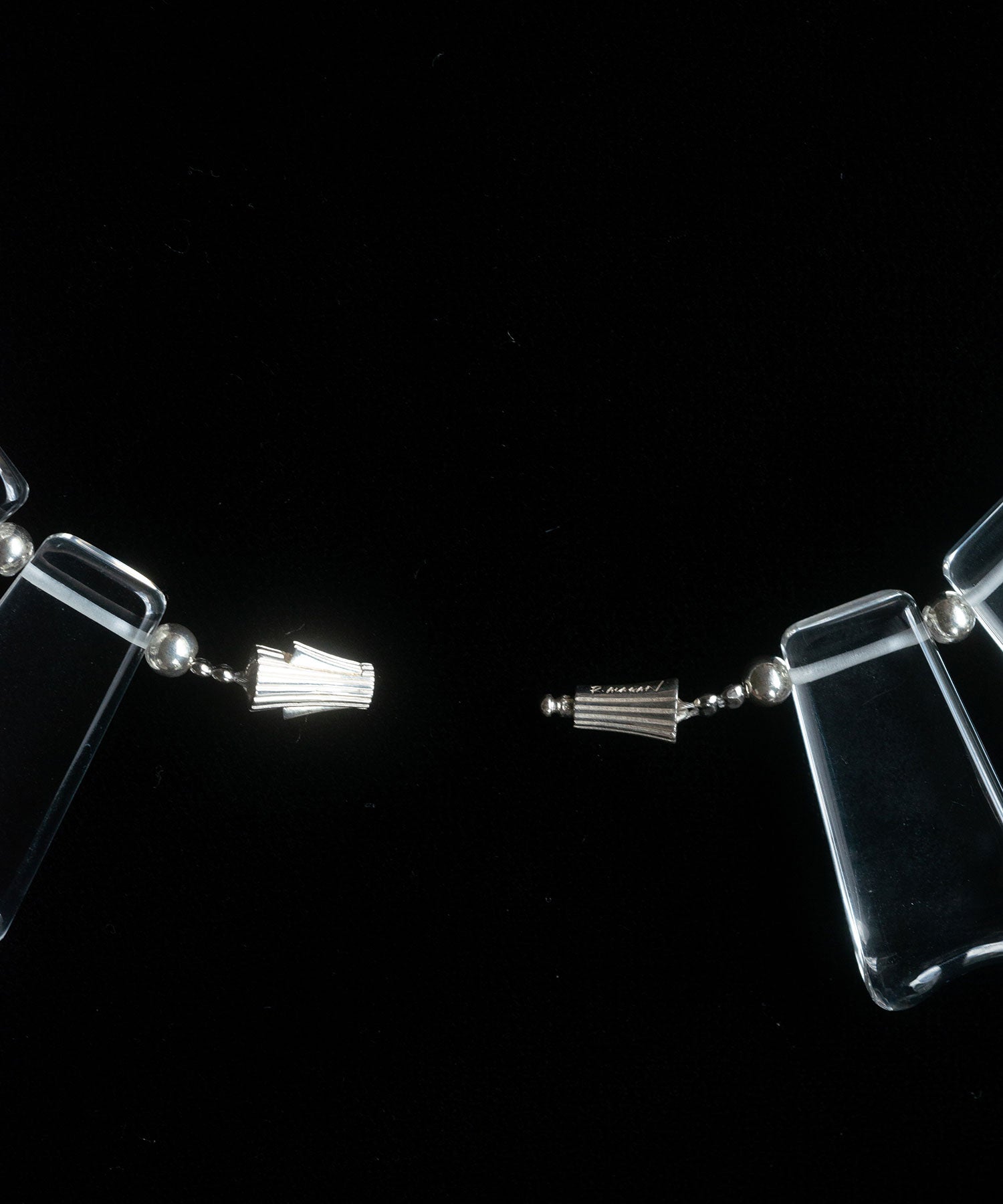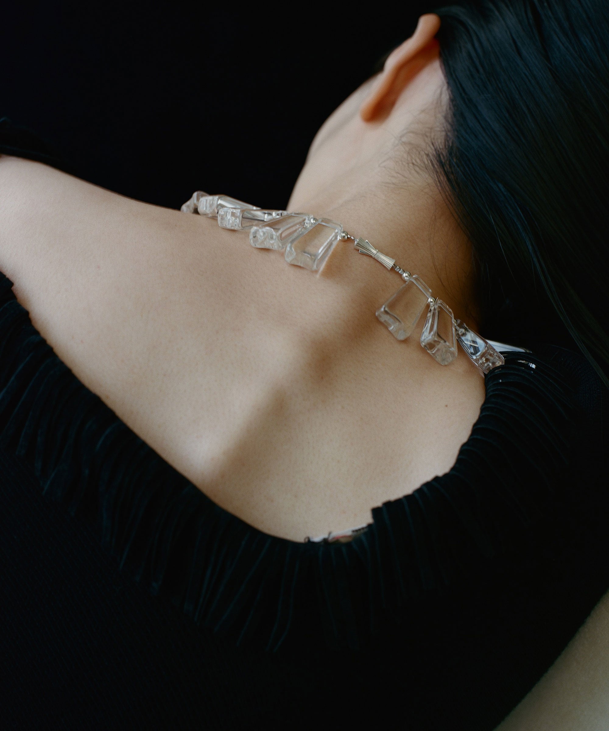 インクルージョンのない透明な水晶を用い、フリンジ状に連ねたネックレス。