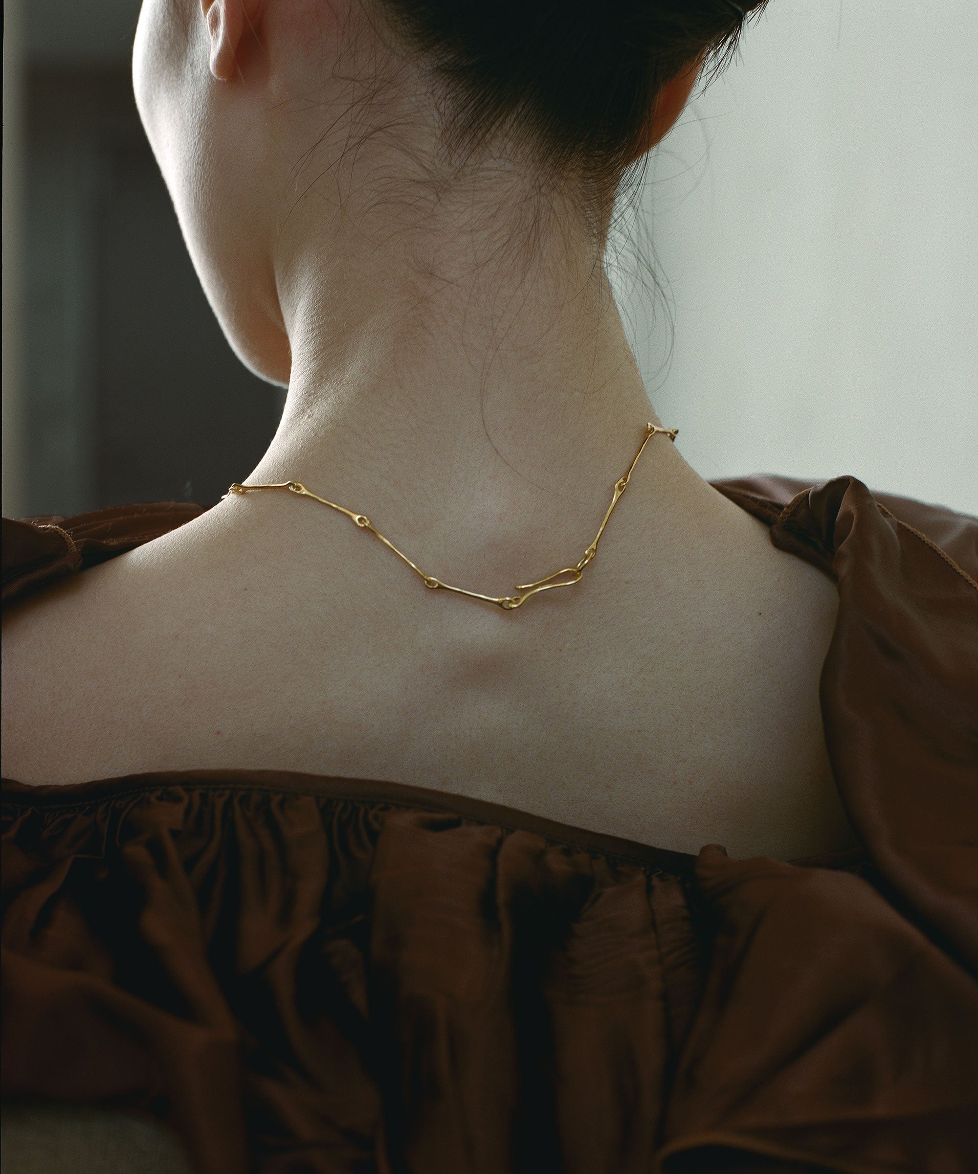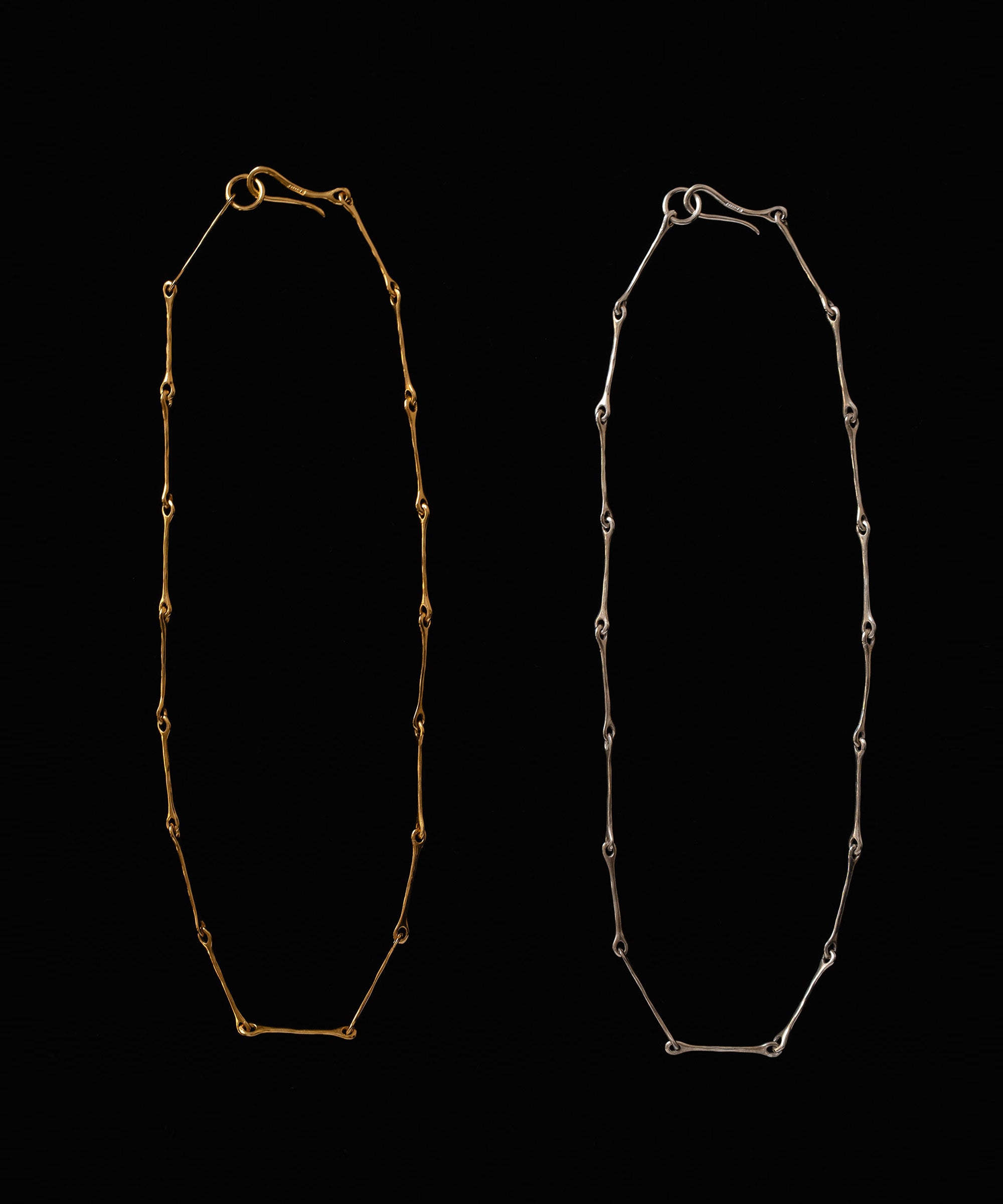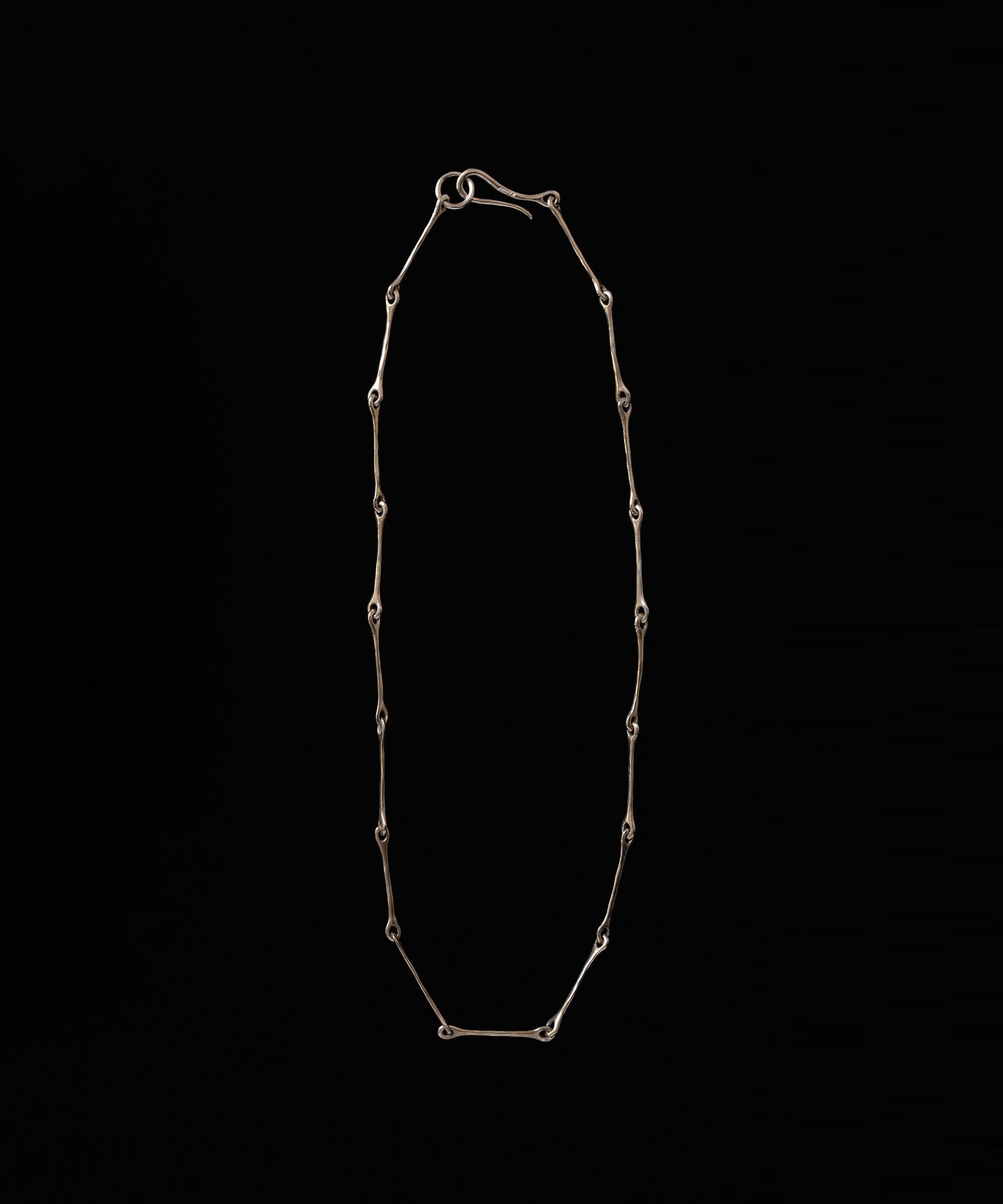 骨のような形をチェーンにし、造形美とフレッシュさが融合したネックレスです。