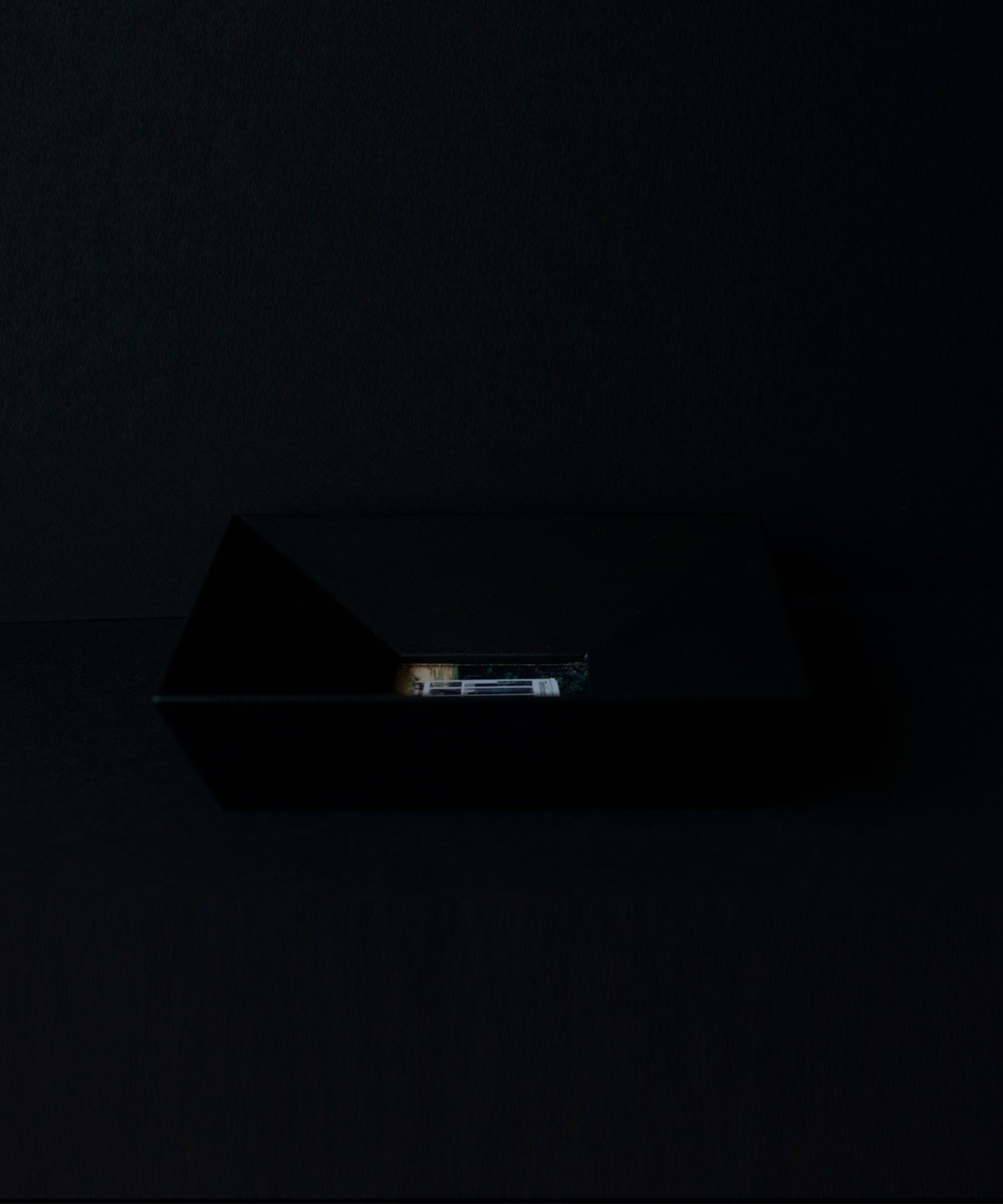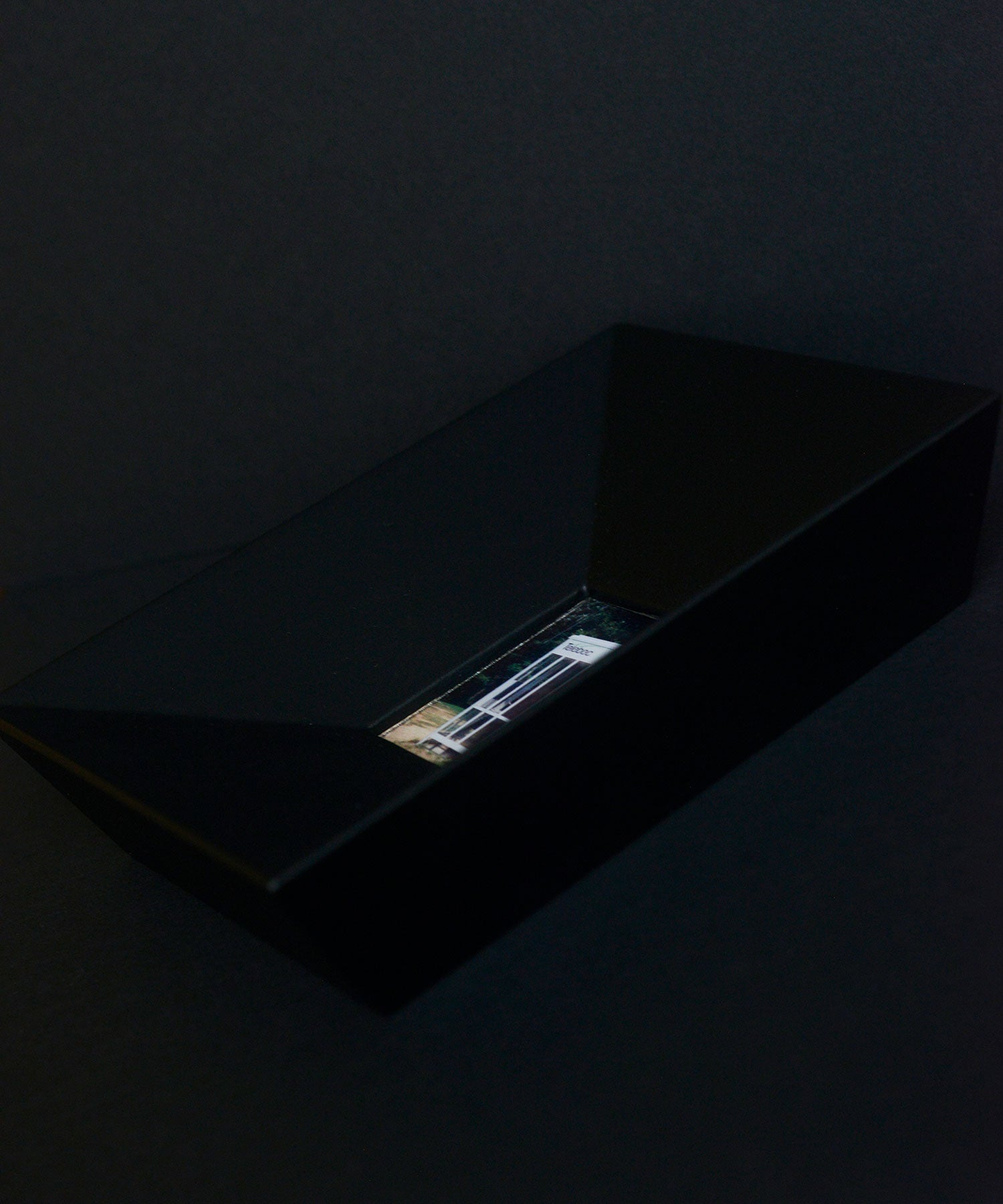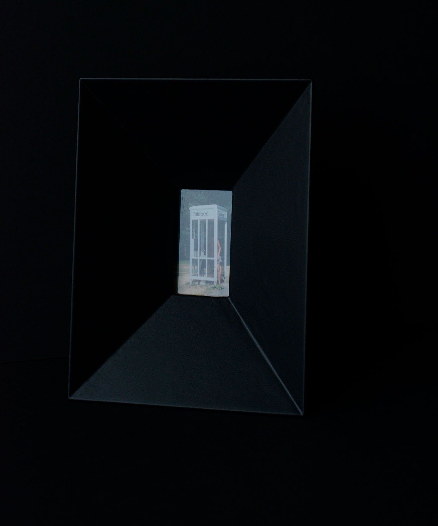⼩さな写真に滑り落ちていくような、覗き込ませるような不思議なフォルムは、松原博⼦⽒とプロダクトデザイナー⼩久保⽒によるデザイン。