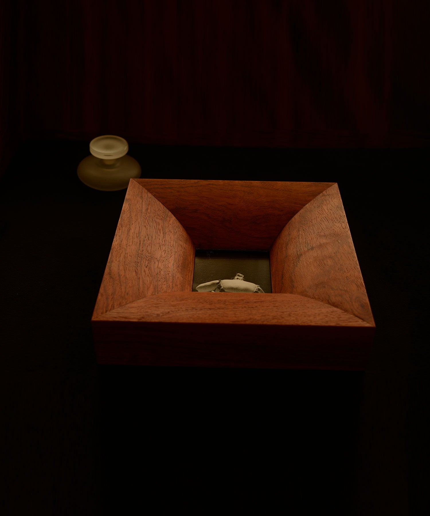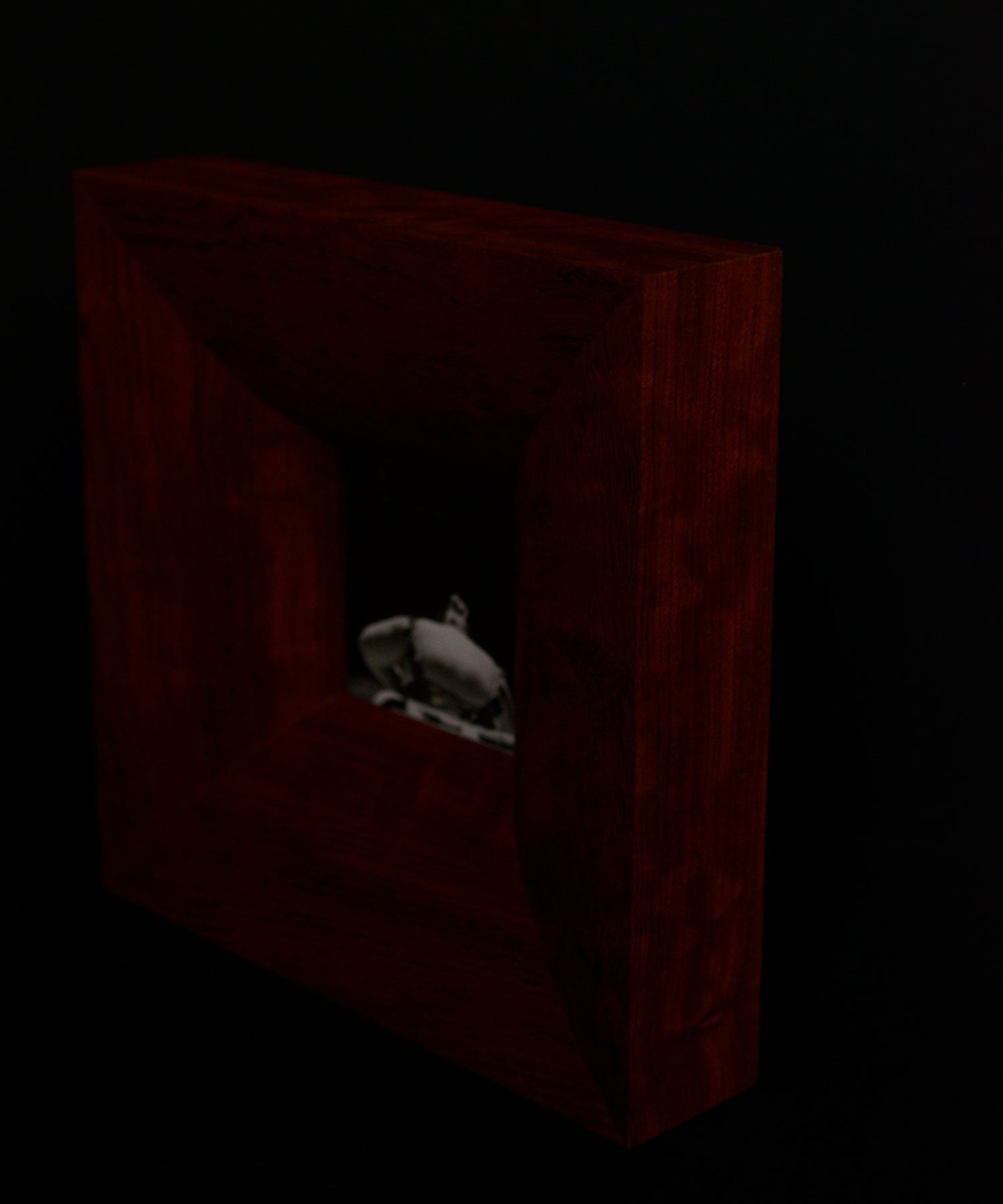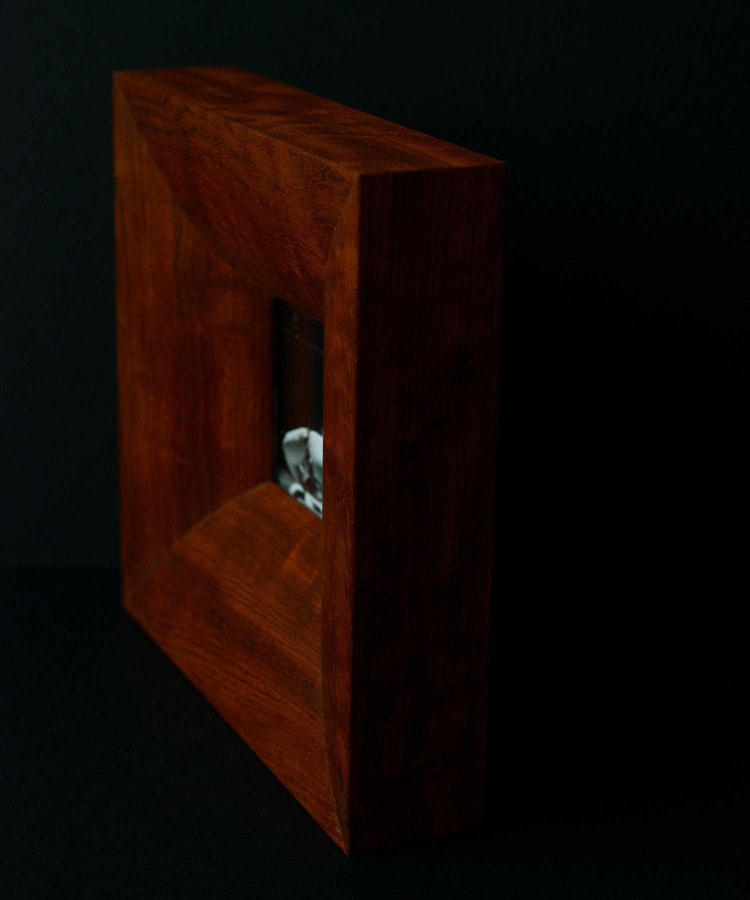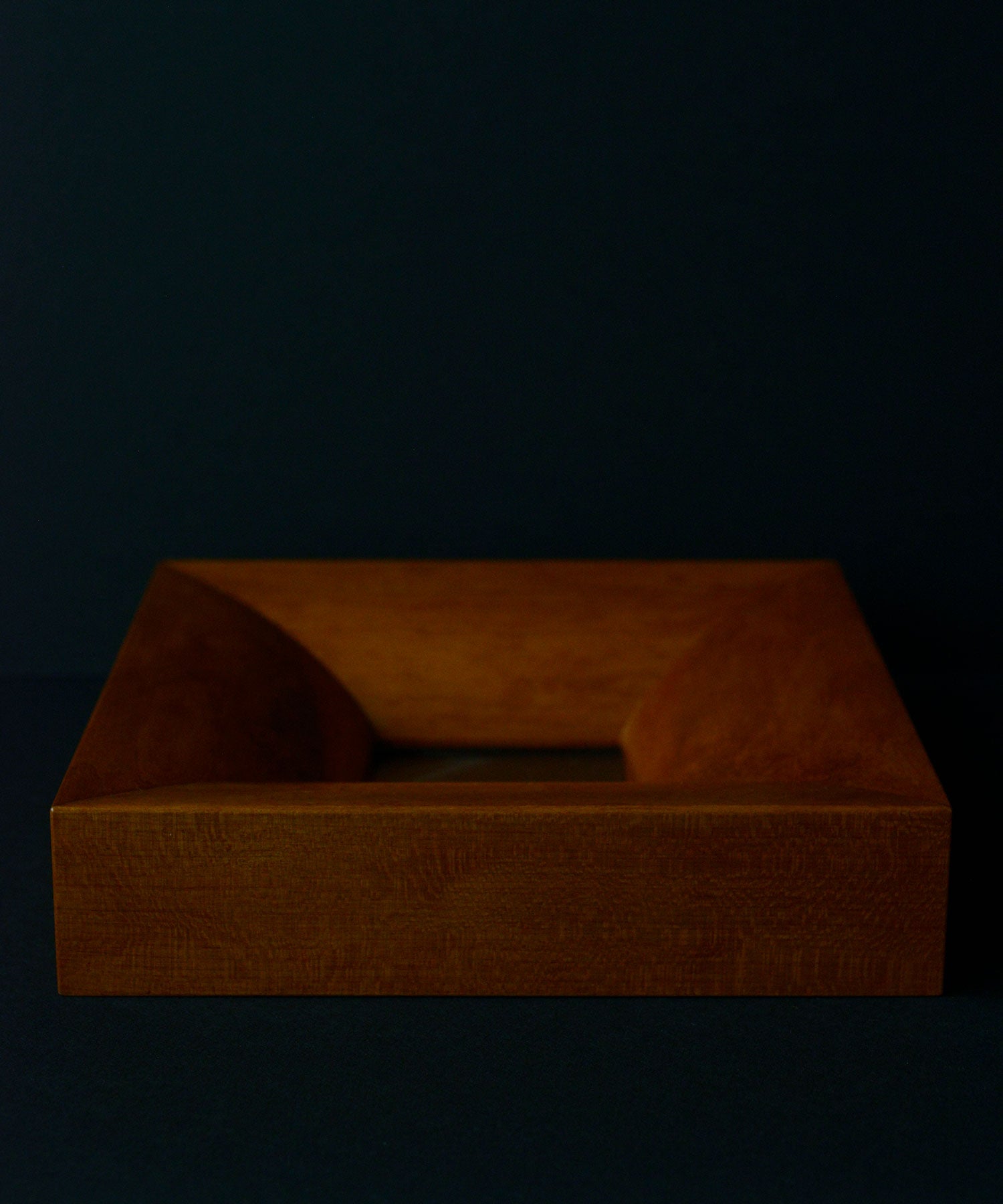 かりんはいろいろな⽊⽬を持つ⽊ですが、その中でも美しい⽊⽬のみを使った贅沢なフレームです。強度もあり重みもあるため、物としての存在感があります。蜜蝋を⼆層に渡り丁寧に塗布することで、豊かな表情を⾒せてくれています。