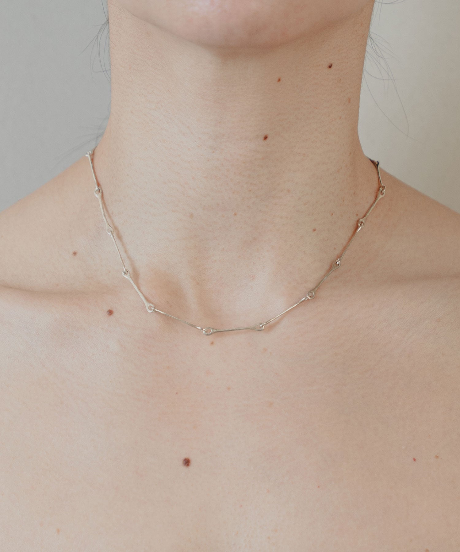 骨のような形をチェーンにし、造形美とフレッシュさが融合したネックレスです。