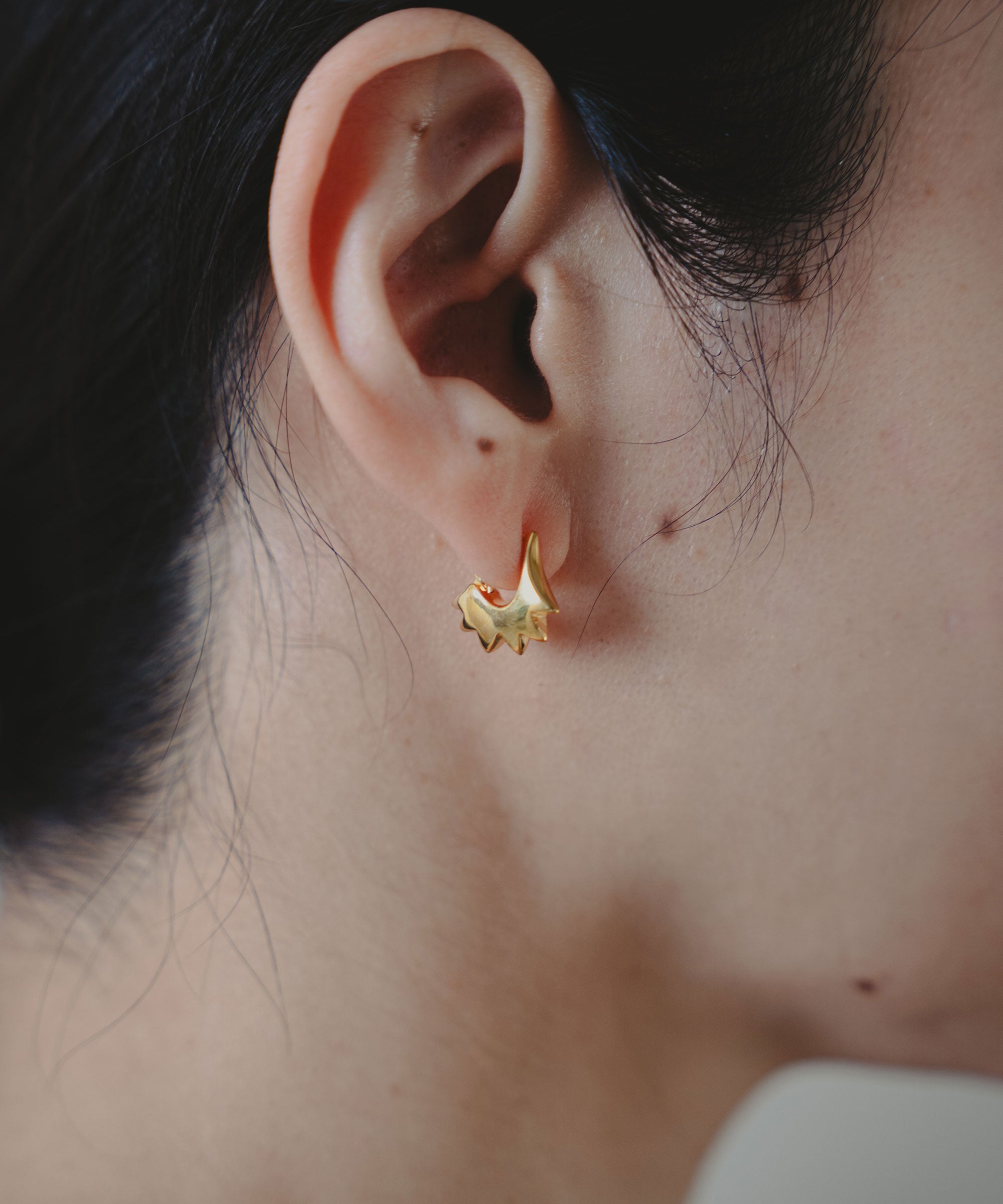 TINY HEART HOOPSが一人ぼっちで寂しそうだったので、友達を作りました。月と太陽です。月は三日月、太陽は燦々としています。フォルムが面白く出来上がっているのですが、付けると驚きの可愛さです。月や太陽を身につけて日々を楽しんでいただきたいです。